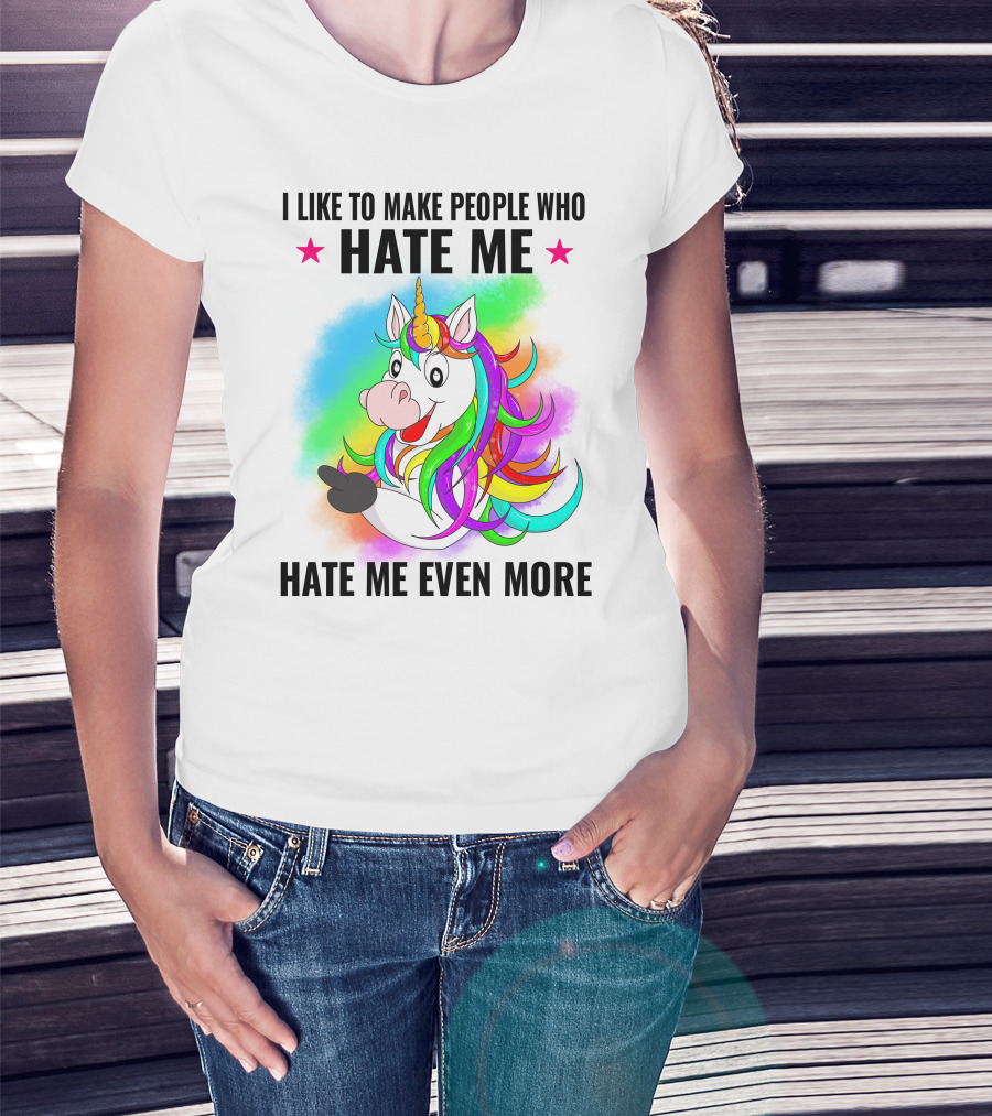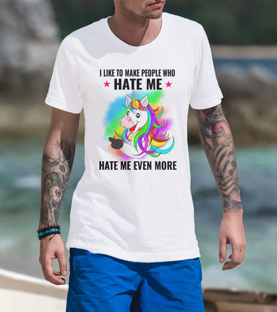 I LIKE TO MAKE PEOPLE WHO HATE ME HATE ME EVEN MORE Unicorn Rainbow Star T-Shirt