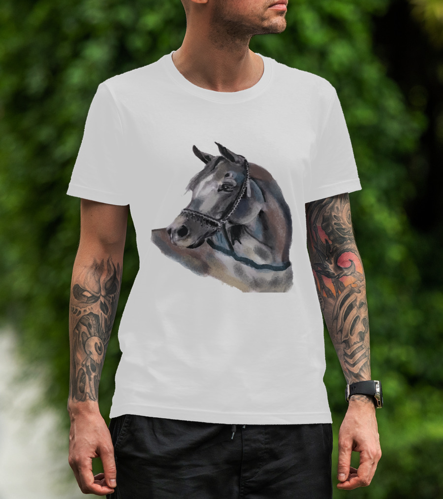 The Watercolor Portrait of Arabian Horse Head T-shirt is designed for everyday wear and a consistent fit. Fabric is pre-shrunk ring-spun cotton with durable stitching. See the size chart below for exact measurements.