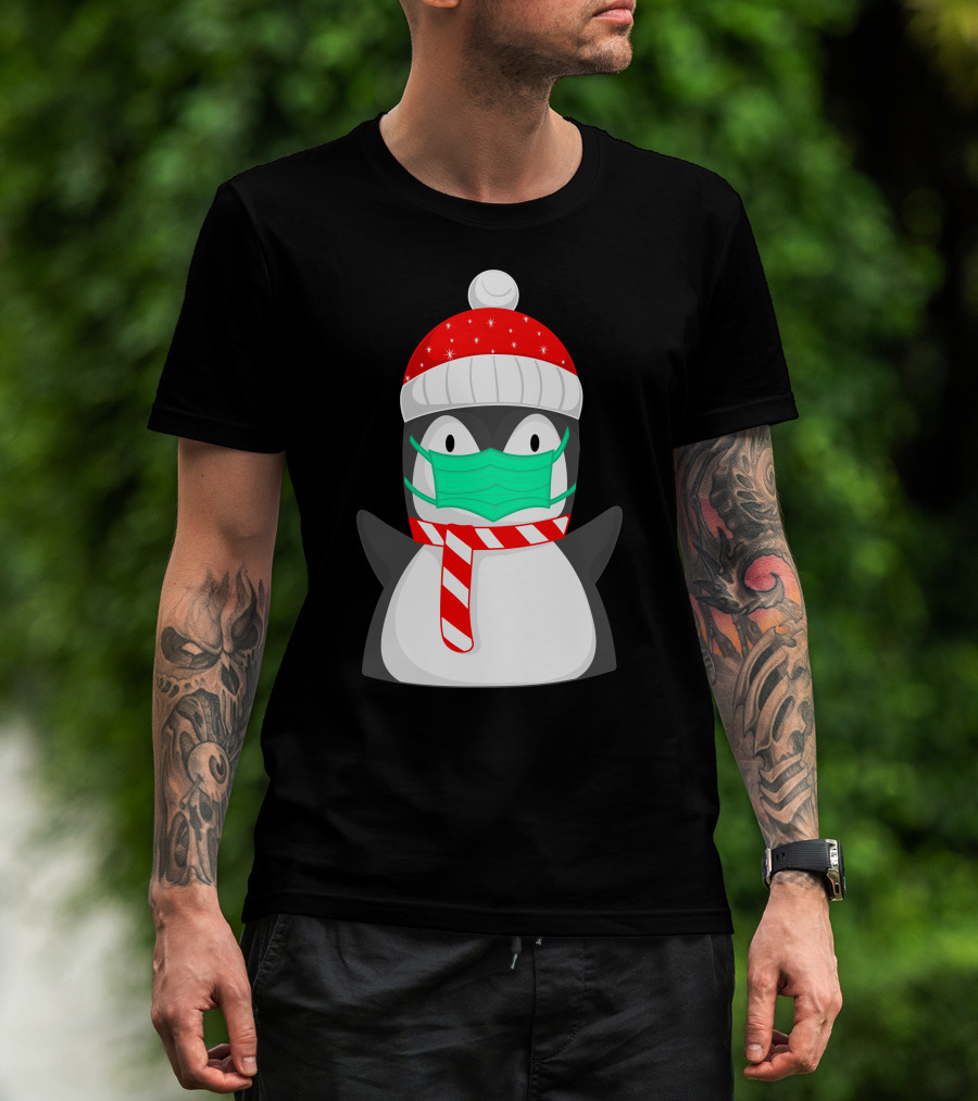 Pineguine Masked Penguin In Winter Hat And Scarf T-Shirt