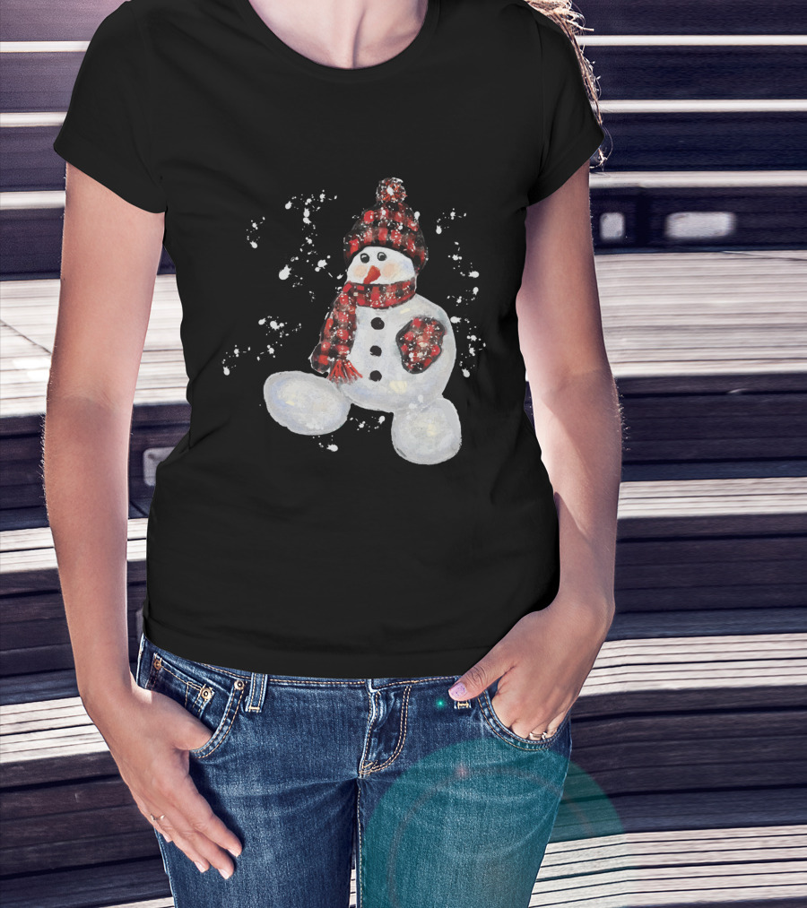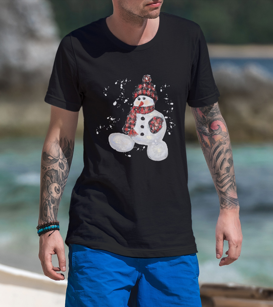 Watercolor Snowman Buffalo Plaid Hat And Scarf With Snowflakes T-Shirt
