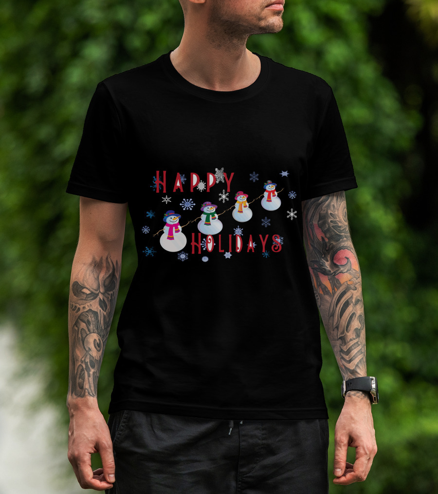 Happy Holidays Snowmen With Snowflakes T-Shirt