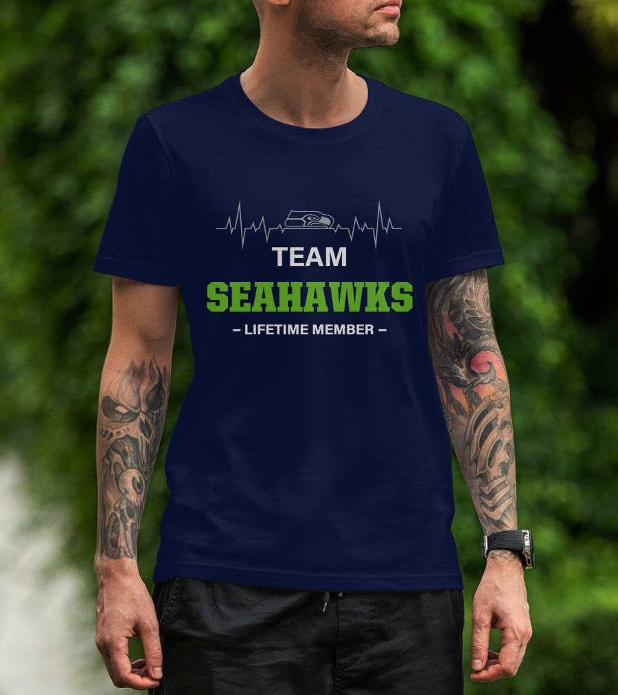 The Team Seahawks Lifetime Member T-shirt is designed for everyday wear and a consistent fit. Fabric is pre-shrunk ring-spun cotton with durable stitching. See the size chart below for exact measurements.