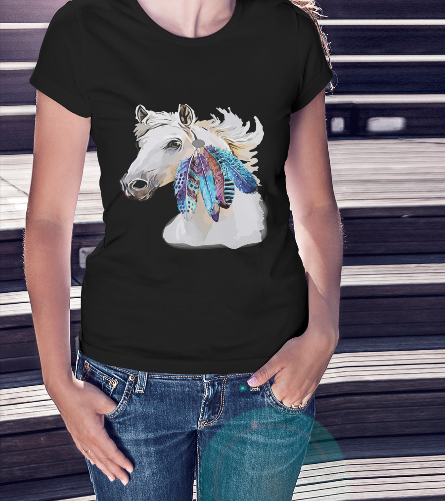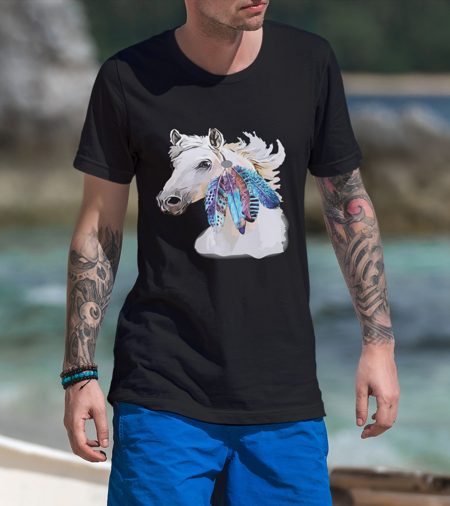 Horse Boho Feathers Vibrant Mane T-Shirt