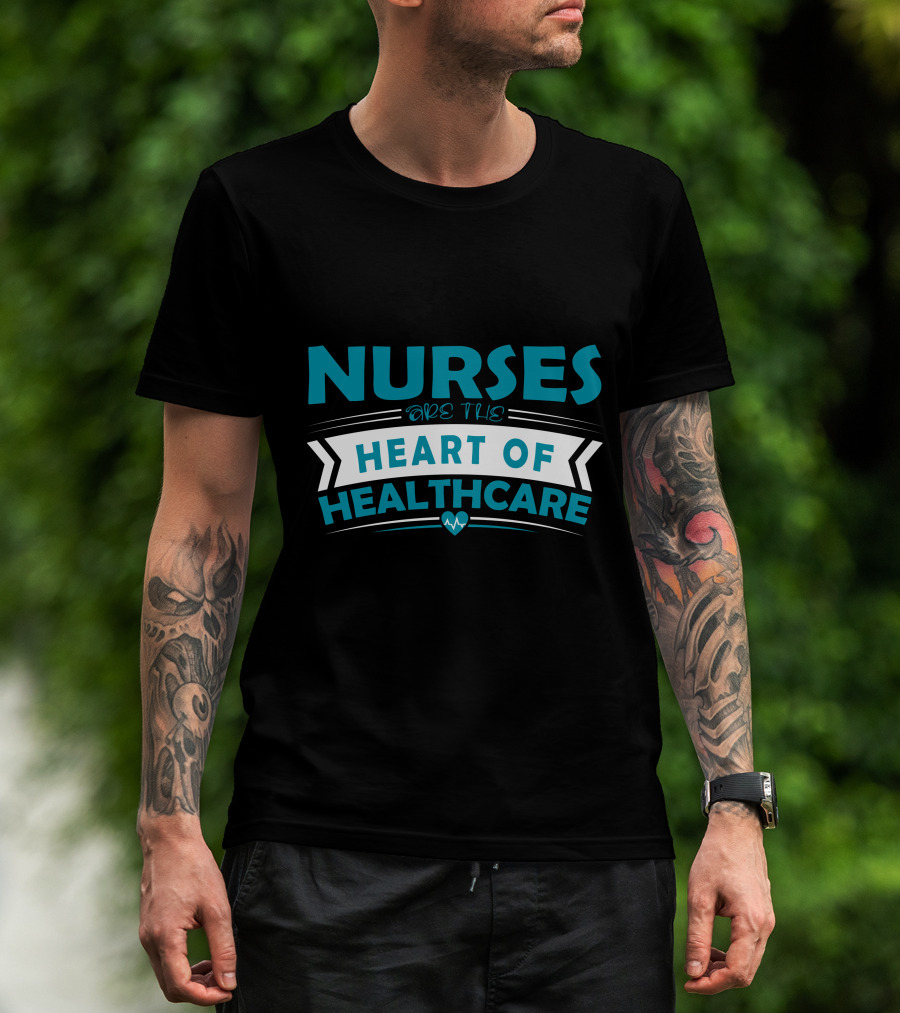 The Nurses Are The Heart Of Healthcare T-shirt is designed for everyday wear and a consistent fit. Fabric is pre-shrunk ring-spun cotton with durable stitching. See the size chart below for exact measurements.