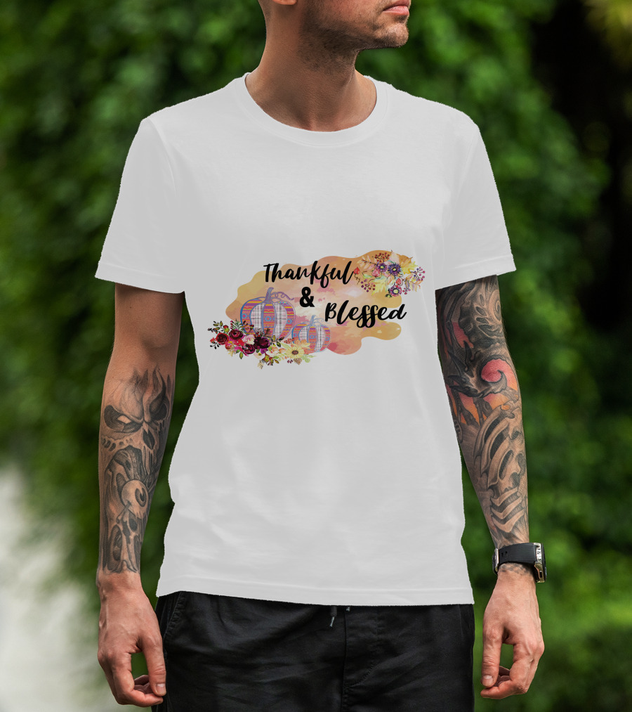 Thankful And Blessed Floral Watercolor Pumpkins T-Shirt