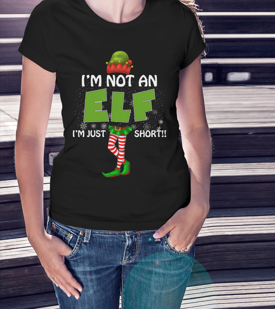 The I'M NOT AN ELF I'M JUST SHORT Striped Legs Green Hat T-shirt is designed for everyday wear and a consistent fit. Fabric is pre-shrunk ring-spun cotton with durable stitching. See the size chart below for exact measurements.