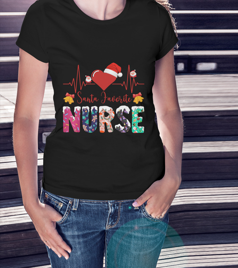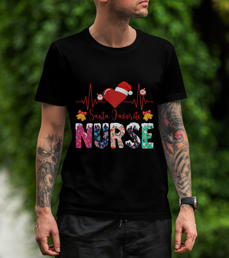 Santa Favorite Nurse Christmas Heartbeat T-Shirt