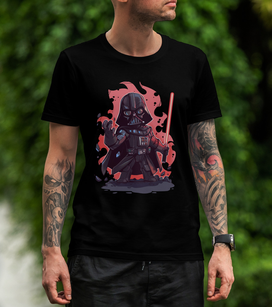 Darth Vader Cartoon With Lightsaber Star Wars Character T-Shirt