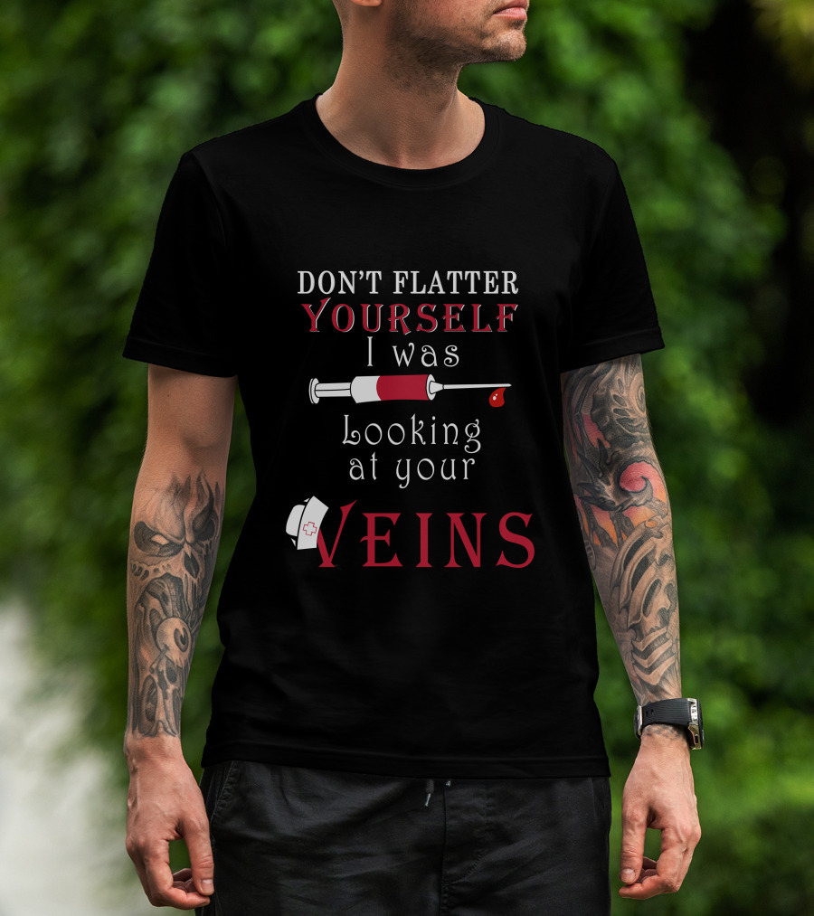 Don't Flatter Yourself I Was Looking At Your Veins Syringe And Nurse Hat T-Shirt