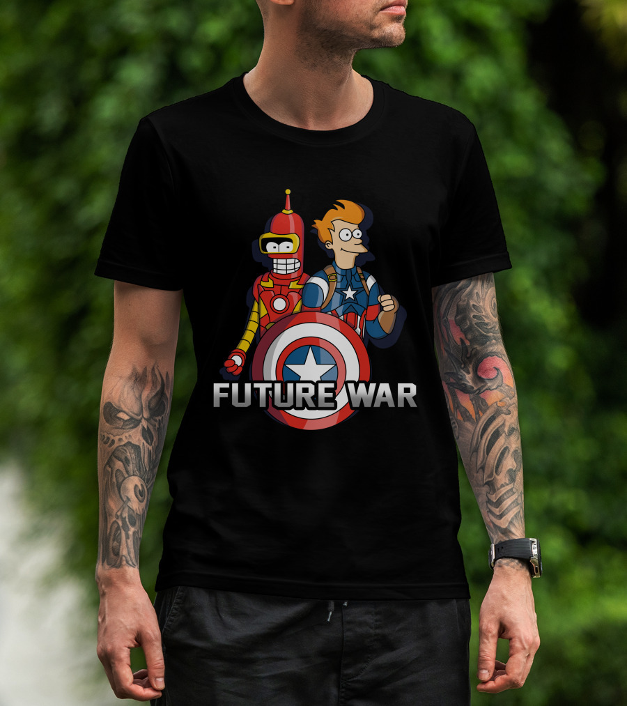 Futurama Future War Bender Fry Captain America Shield T-Shirt