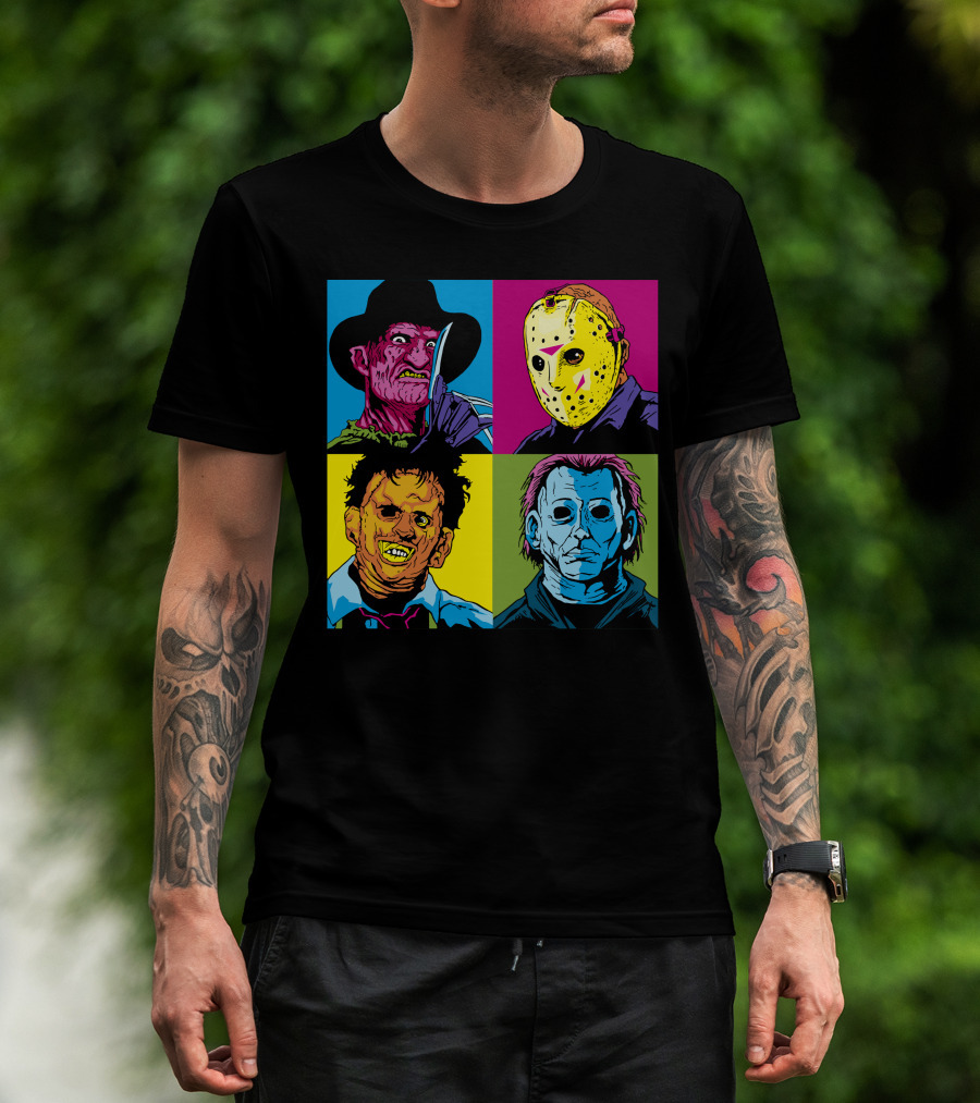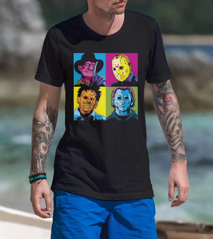 Freddy Jason Leatherface Michael Myers Horror Pop Art 4 Face T-Shirt