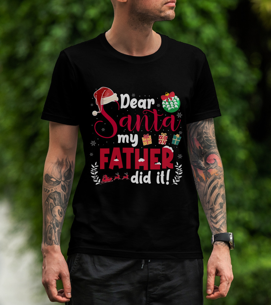Dear Santa My Father Did It Santa Hat Christmas Gifts Sled T-Shirt