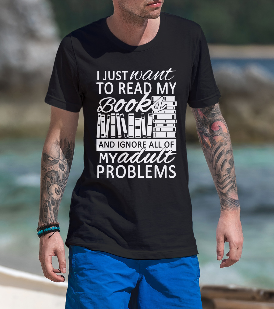I Just Want To Read My Books With Stacked Book Pattern And Ignore All Of My Adult Problems T-Shirt