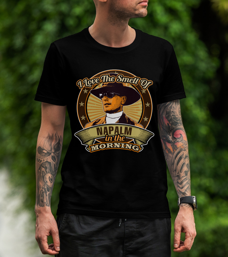 The I Love The Smell Of Napalm In The Morning Apocalypse Now Vintage Military Aesthetic T-shirt is designed for everyday wear and a consistent fit. Fabric is pre-shrunk ring-spun cotton with durable stitching. See the size chart below for exact measurements.
