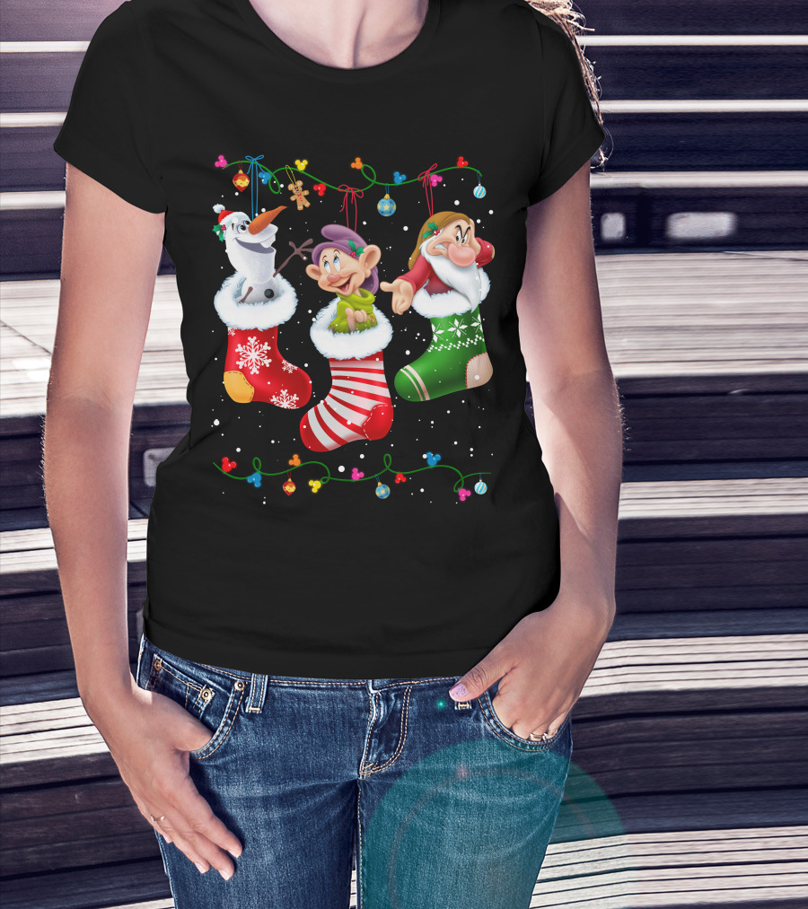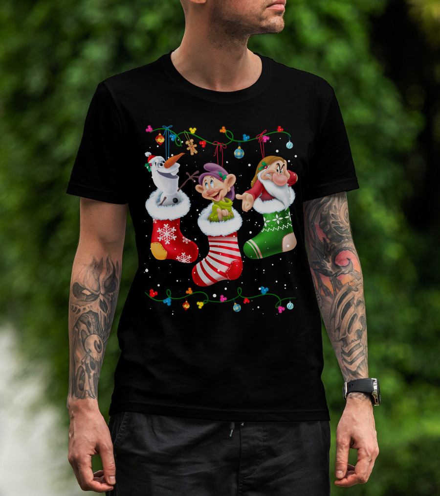 Olaf Dopey Grumpy Christmas Stockings Snowflake Garland T-Shirt