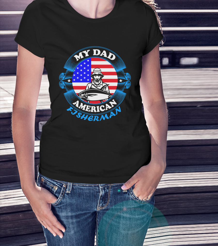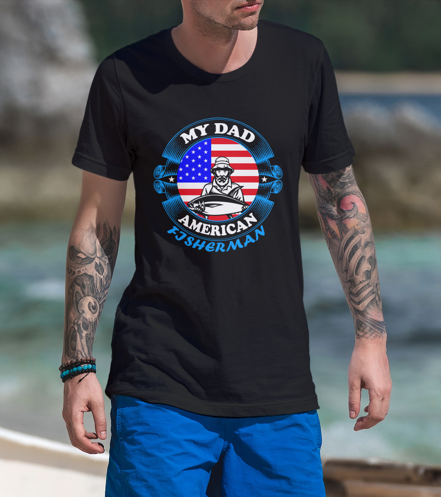 My Dad American Fisherman Stars Stripes Flag T-Shirt