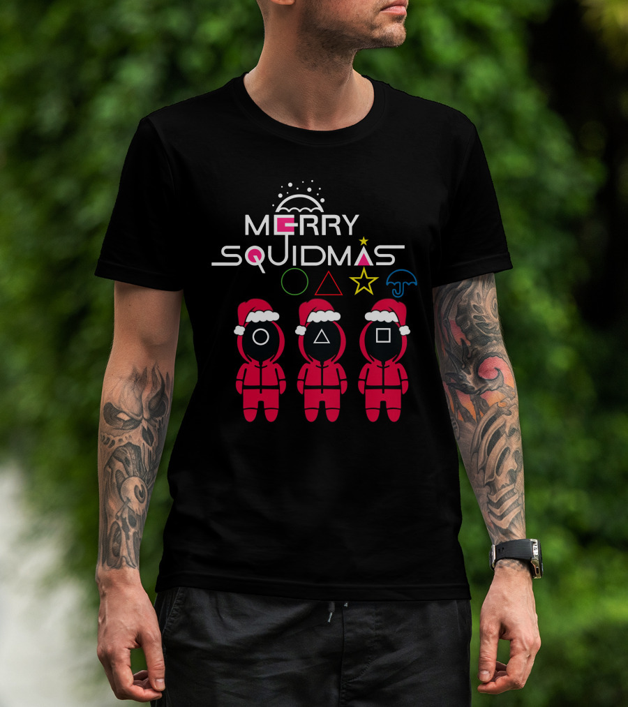 Merry Squidmas Santa Suit Guards Holiday Symbols T-Shirt