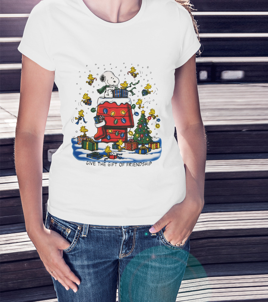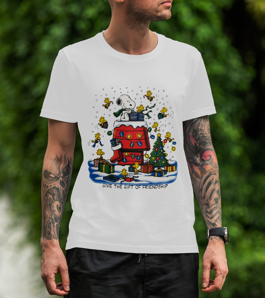 Snoopy Christmas House With Woodstock And Gifts Give The Gift Of Friendship T-Shirt