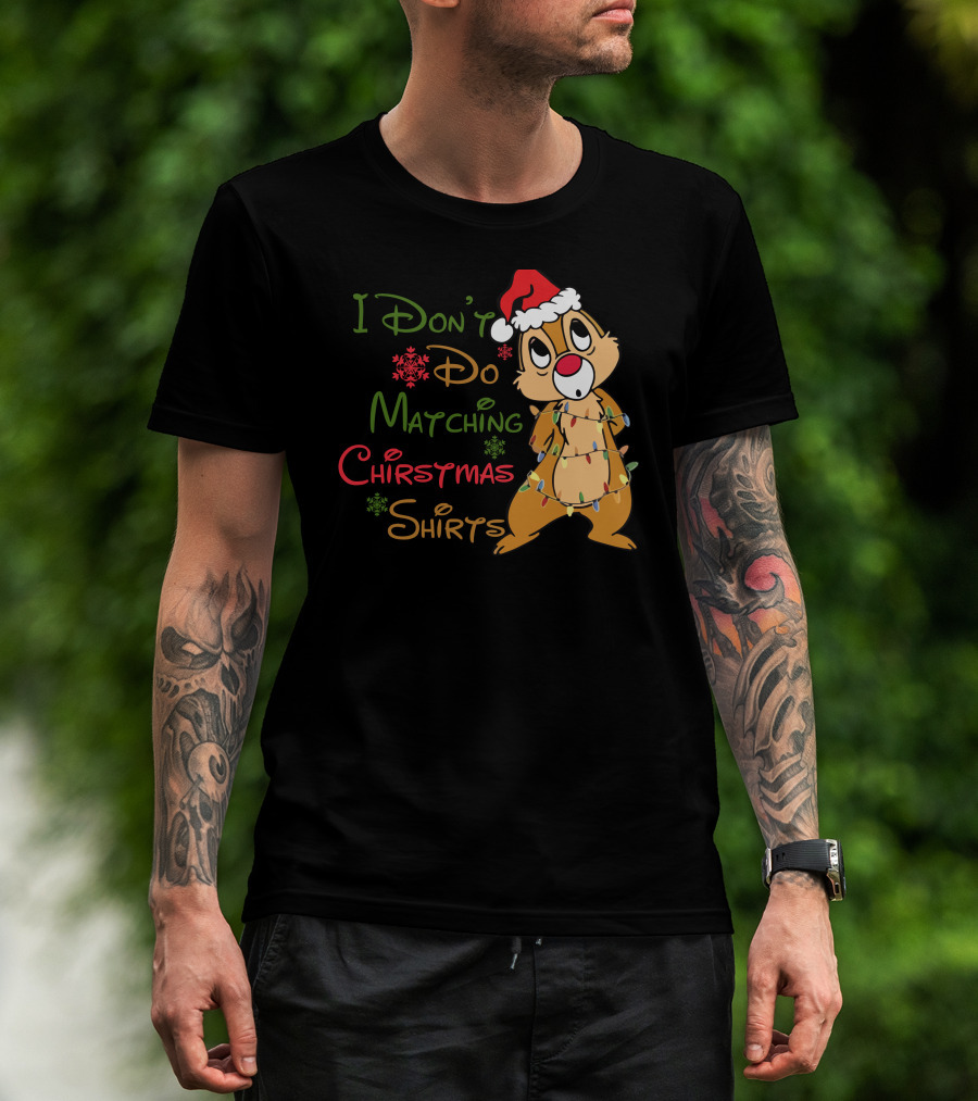I Don't Do Matching Christmas Shirts Santa Hat Chipmunk Holiday Lights T-Shirt