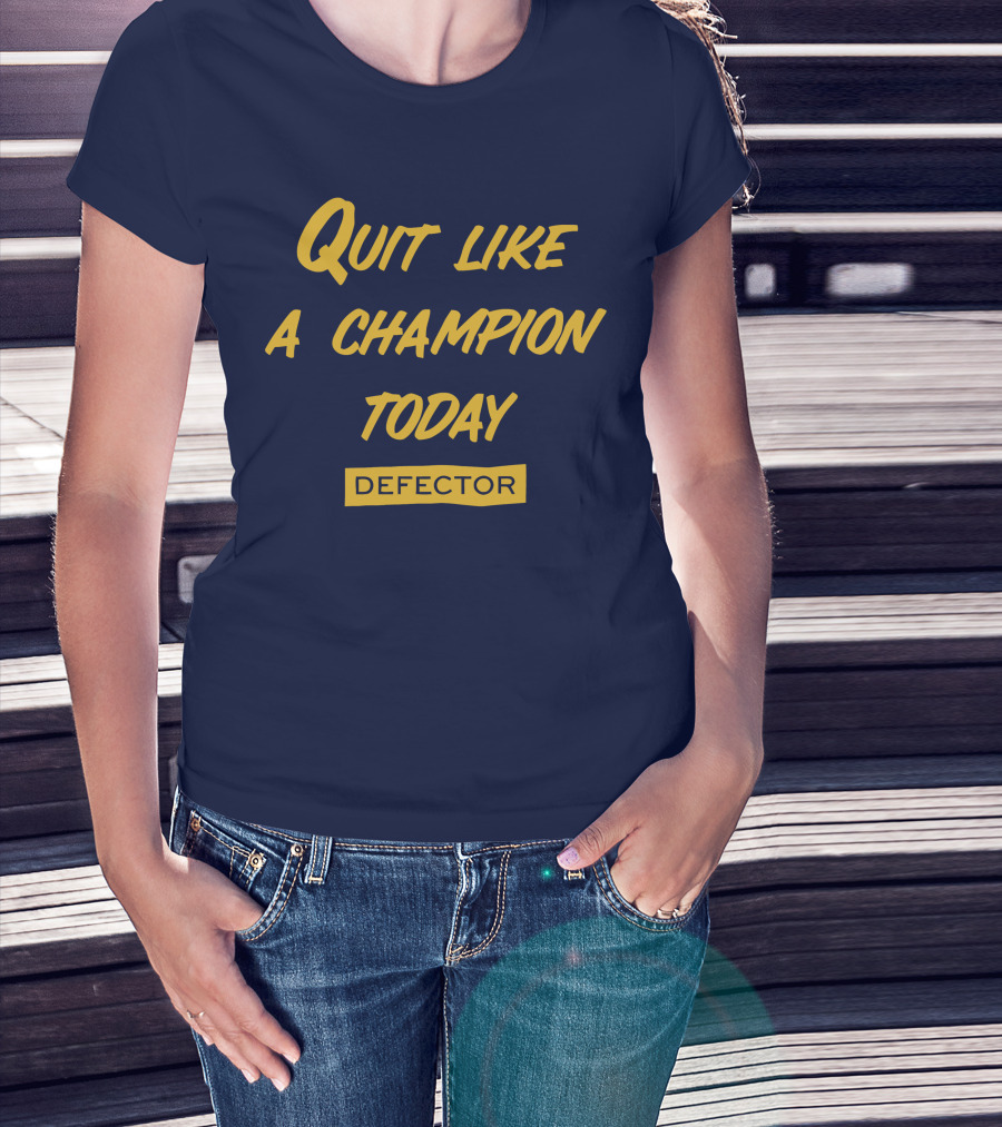 The Quit Like a Champion Today Defector T-shirt is designed for everyday wear and a consistent fit. Fabric is pre-shrunk ring-spun cotton with durable stitching. See the size chart below for exact measurements.