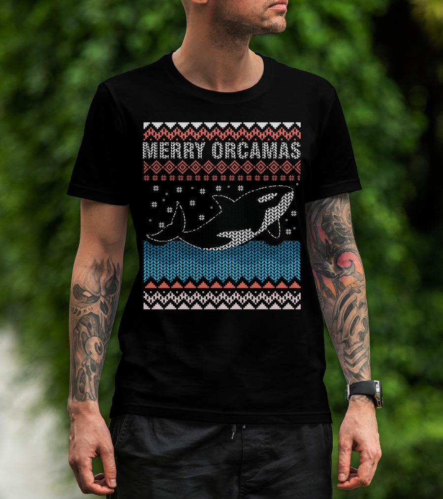 Merry Orcamas Ugly Christmas Orca Killer Whale T-Shirt