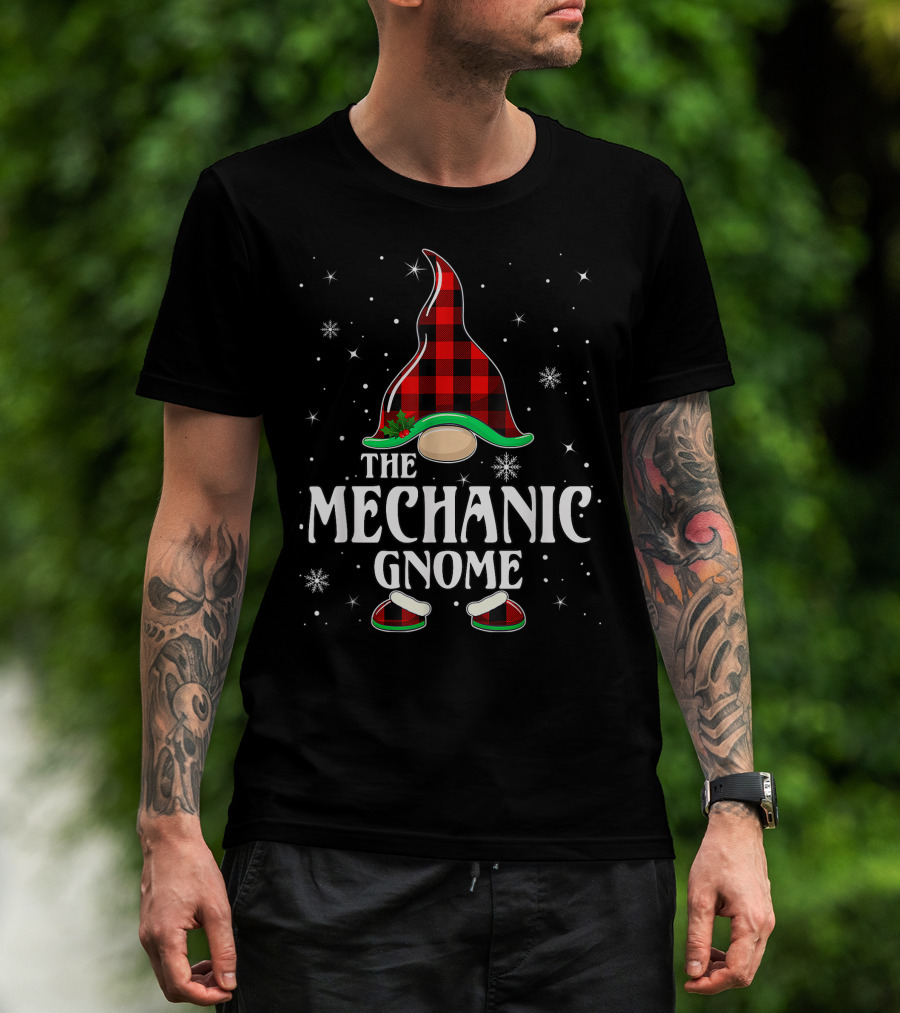 The Mechanic Gnome Buffalo Plaid Christmas Matching Family Holiday Snowflakes T-Shirt