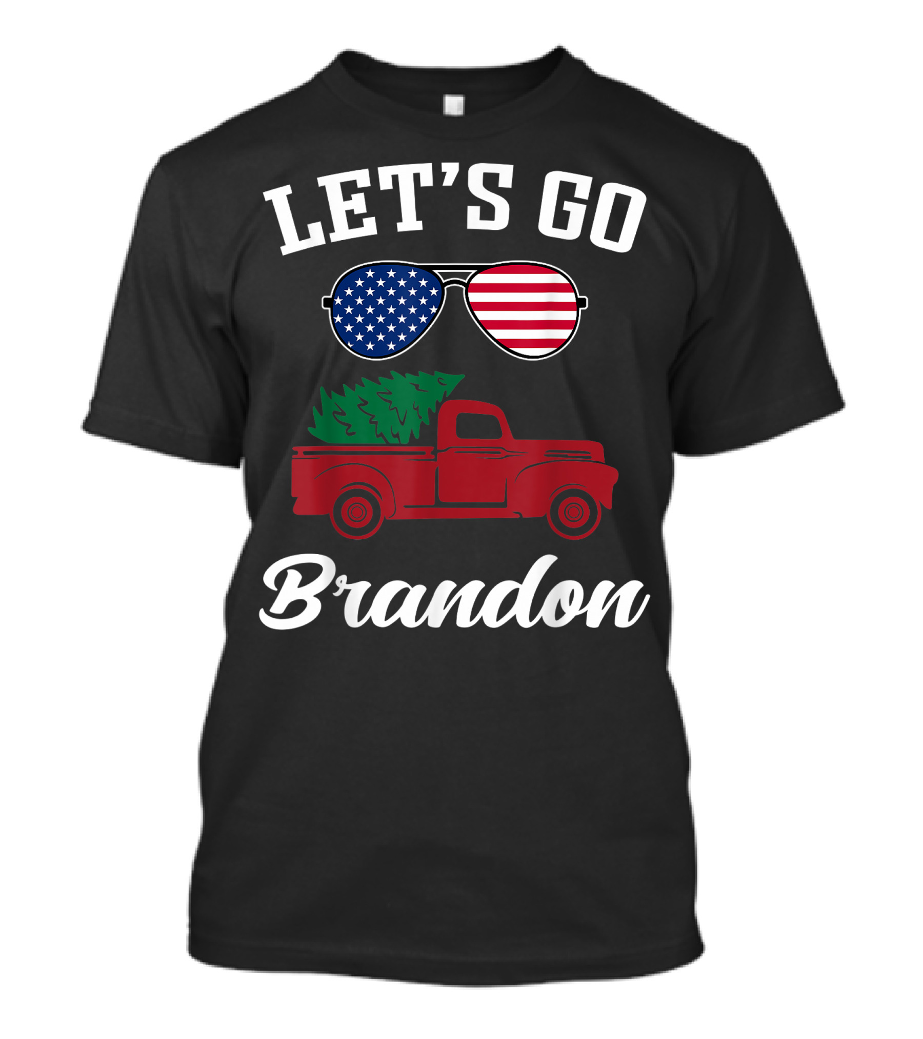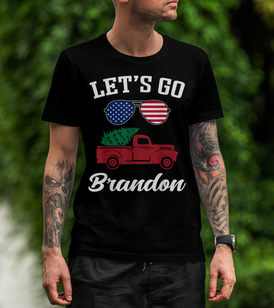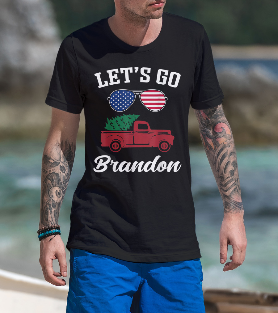 LET'S GO BRANDON American Flag Sunglasses Red Truck Christmas Tree T-Shirt