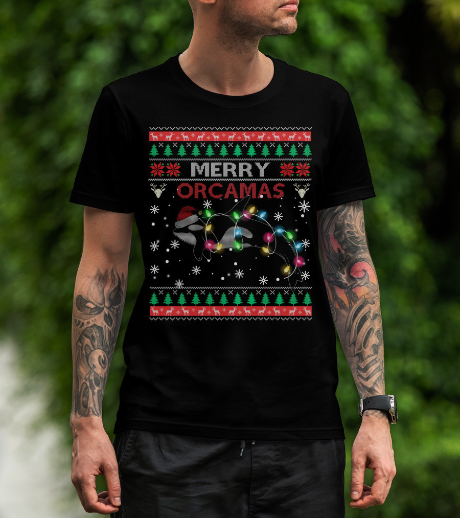 Merry Orcamas Santa Claus Killer Whale Ugly Xmas T-Shirt