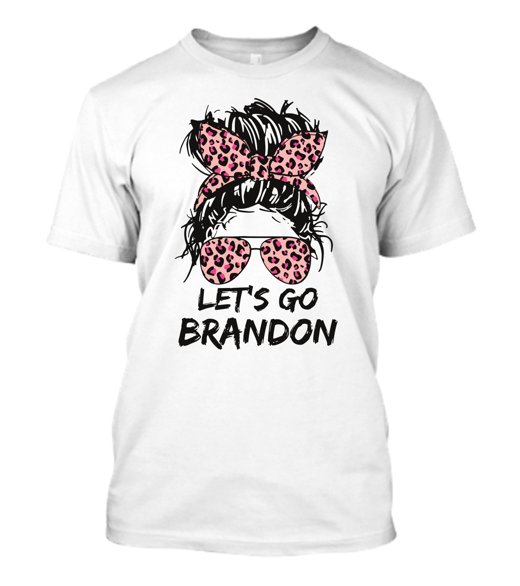 Let's Go Brandon Leopard Print Messy Bun Sunglasses T-Shirt