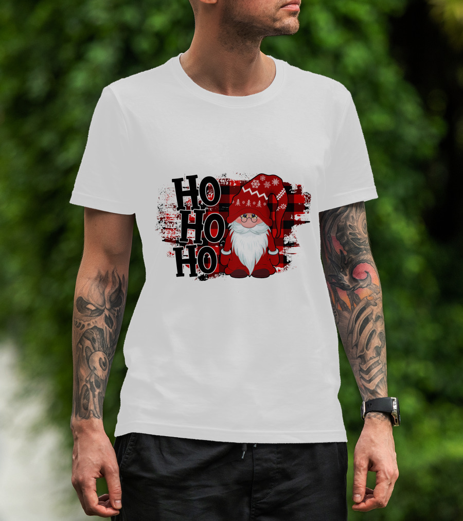 The Ho Ho Ho Gnome Christmas Plaid Santa T-shirt is designed for everyday wear and a consistent fit. Fabric is pre-shrunk ring-spun cotton with durable stitching. See the size chart below for exact measurements.