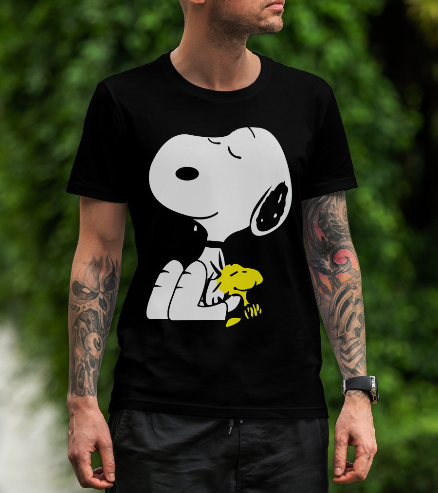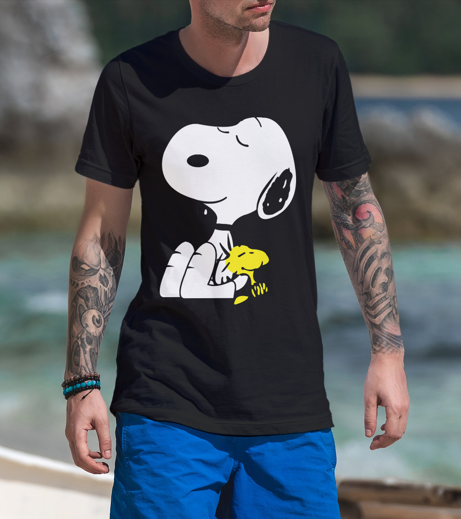 Snoopy Sleep In Peace With Woodstock Sleeping In Black And White Peanuts Comic T-Shirt