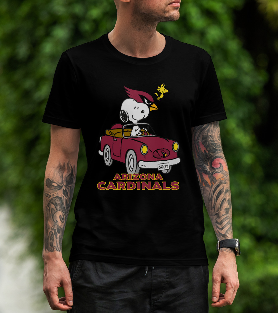 Arizona Cardinals Snoopy Woodstock Driving Adventure T-Shirt