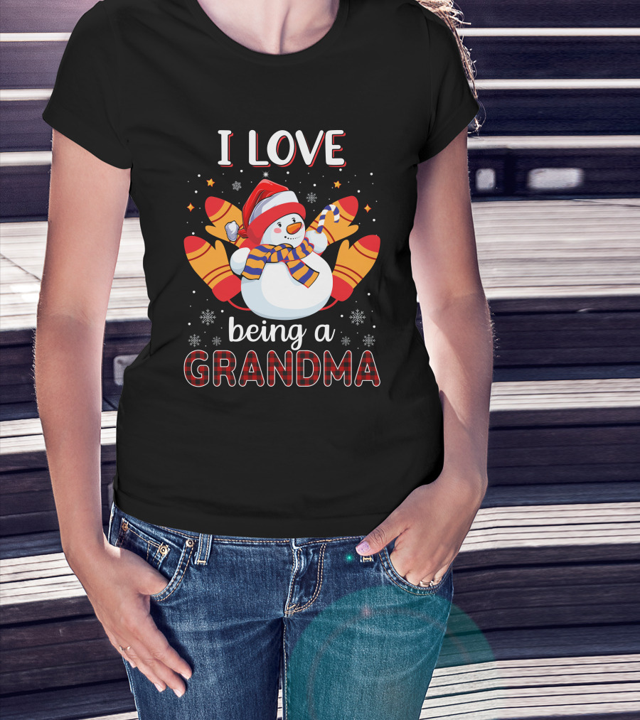 I Love Being A Grandma Snowman With Mittens And Scarf Christmas T-Shirt