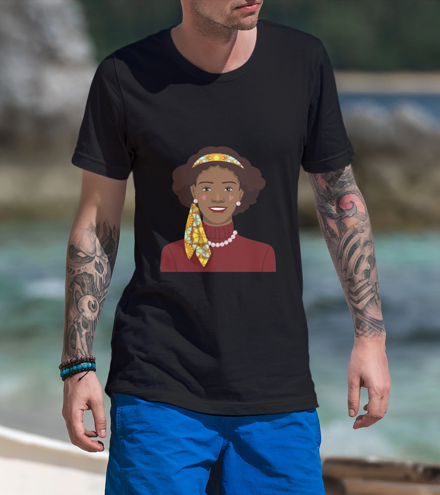 The Black African Woman With Patterned Headband and Red T-shirt is designed for everyday wear and a consistent fit. Fabric is pre-shrunk ring-spun cotton with durable stitching. See the size chart below for exact measurements.