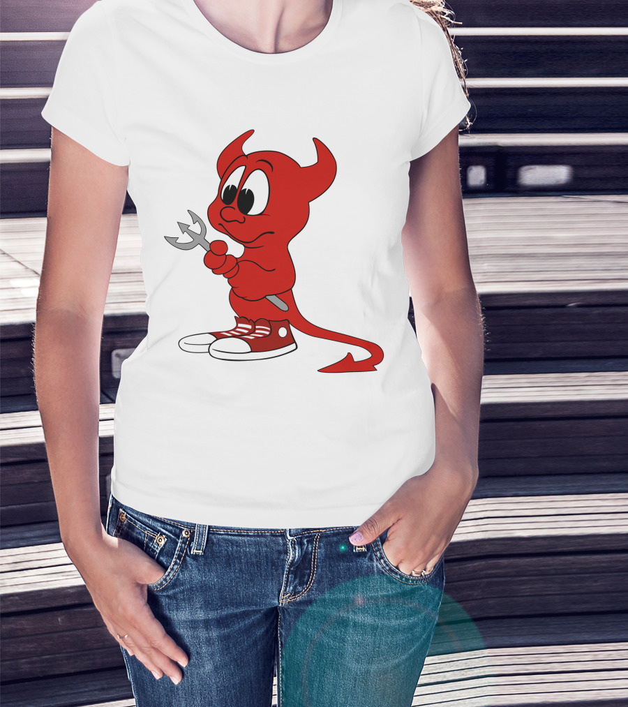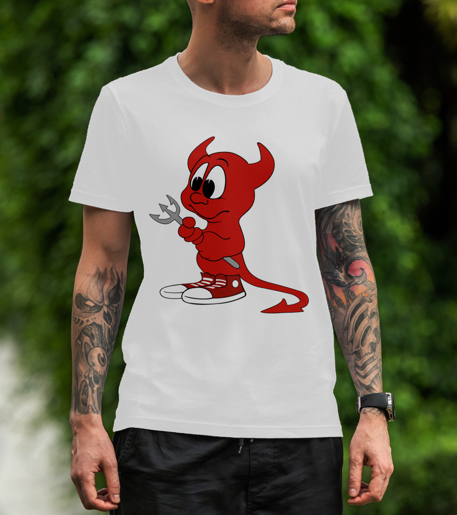Devil In Sneakers Holding Pitch Fork Cartoon T-Shirt