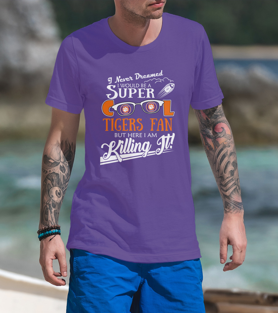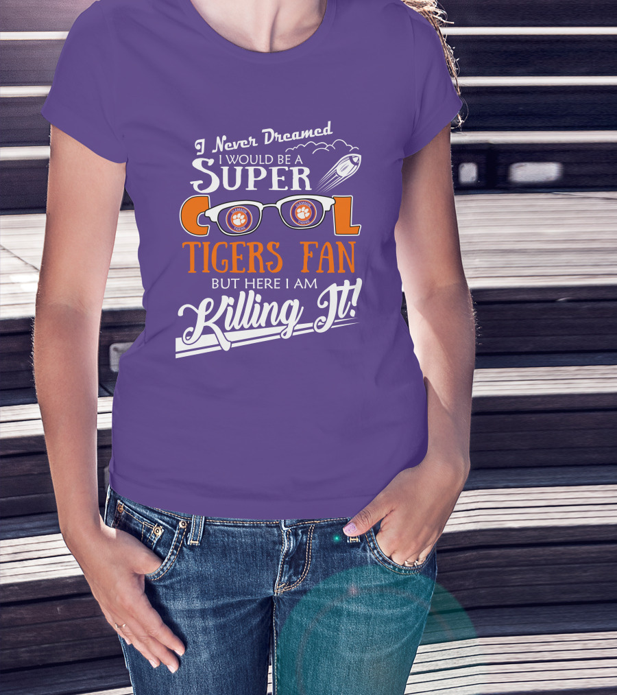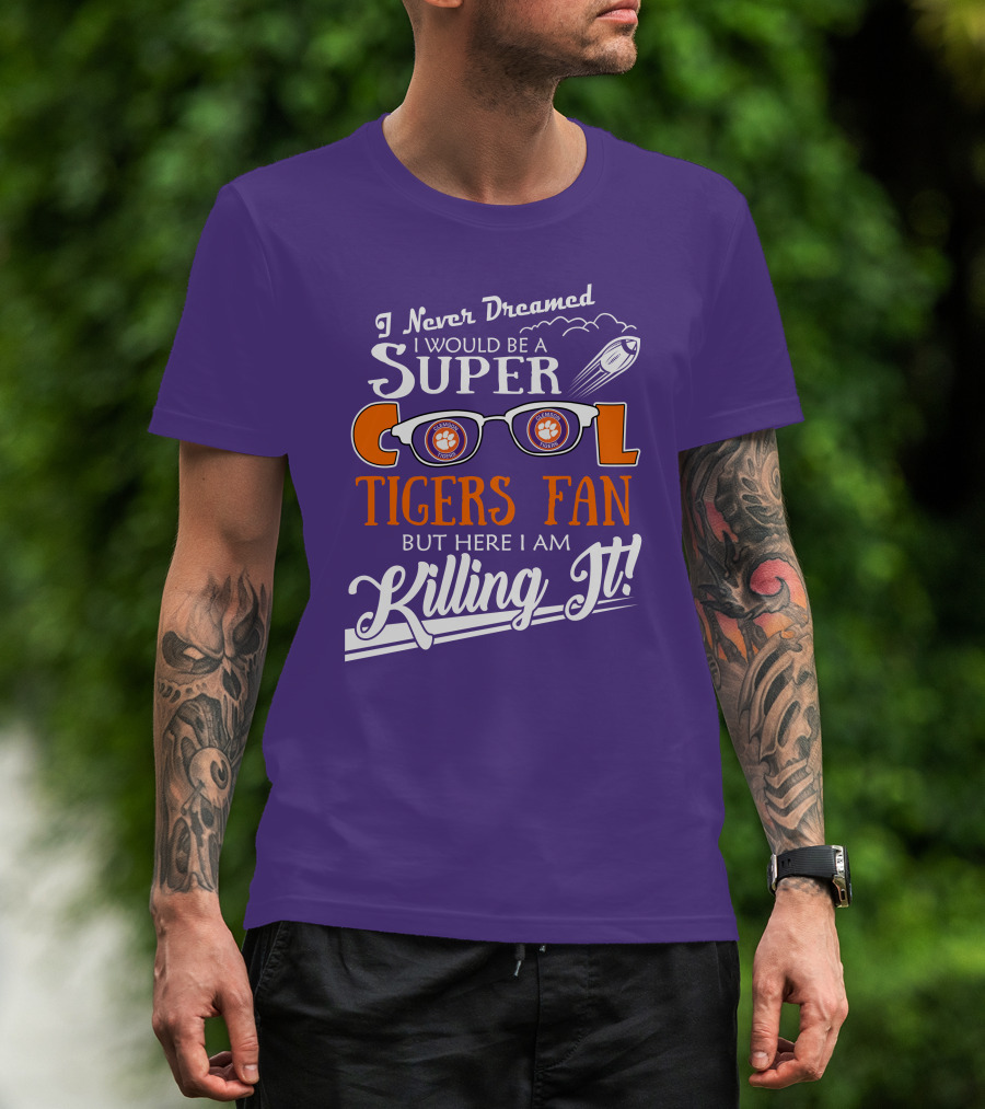 The I Never Dreamed I Would Be a Super Cool Clemson Tigers Fan But Here I Am Killing It T-shirt is designed for everyday wear and a consistent fit. Fabric is pre-shrunk ring-spun cotton with durable stitching. See the size chart below for exact measurements.
