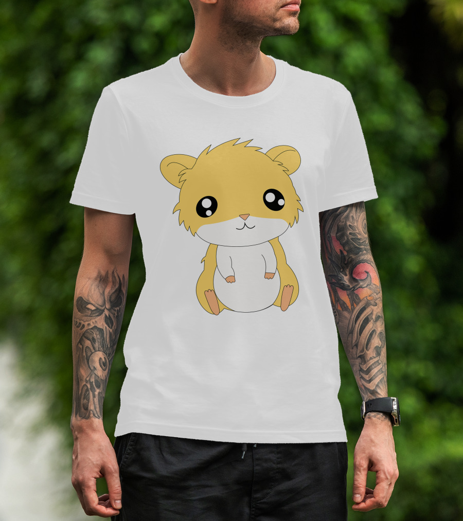 The Cute Baby Hamster Cartoon T-shirt is designed for everyday wear and a consistent fit. Fabric is pre-shrunk ring-spun cotton with durable stitching. See the size chart below for exact measurements.