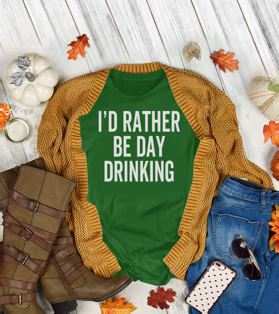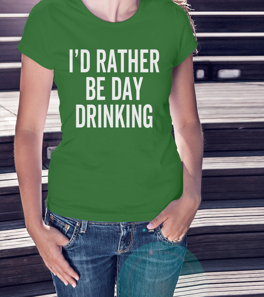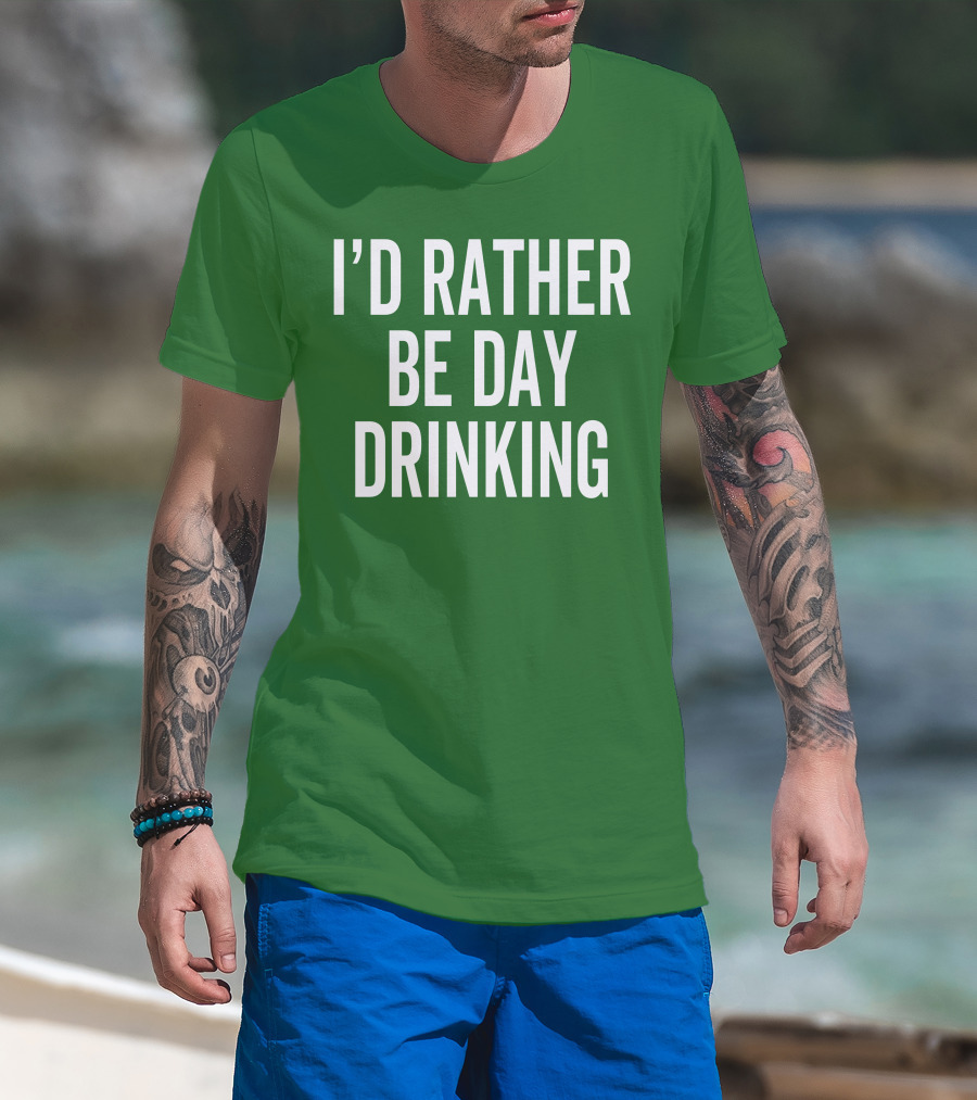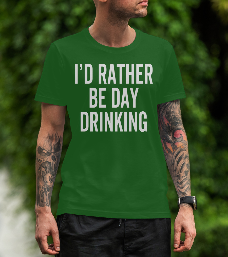 The I'D Rather Be Day Drinking T-shirt is designed for everyday wear and a consistent fit. Fabric is pre-shrunk ring-spun cotton with durable stitching. See the size chart below for exact measurements.