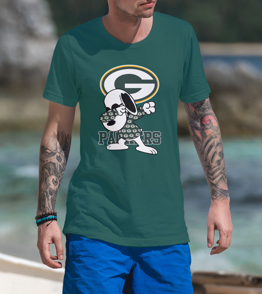 The Green Bay Packers Snoopy Dabbing Packers T-shirt is designed for everyday wear and a consistent fit. Fabric is pre-shrunk ring-spun cotton with durable stitching. See the size chart below for exact measurements.