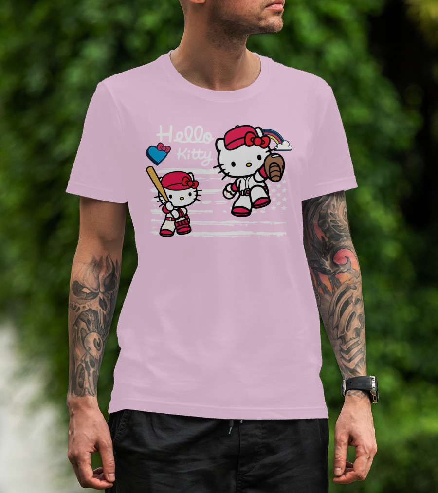 Hello Kitty Baseball American Flag Theme For Fans T-Shirt