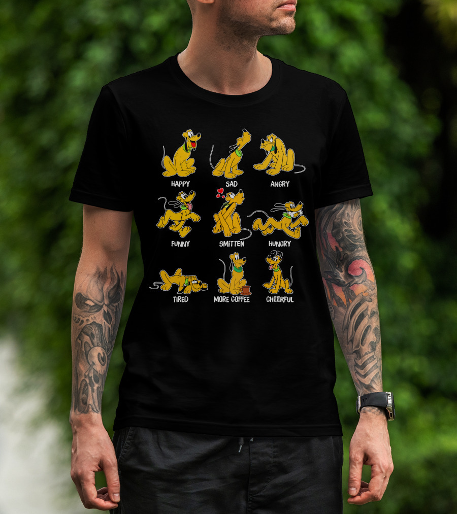 PLUTO MOODS HAPPY SAD ANGRY FUNNY SMITTEN HUNGRY TIRED MORE COFFEE CHEERFUL T-Shirt