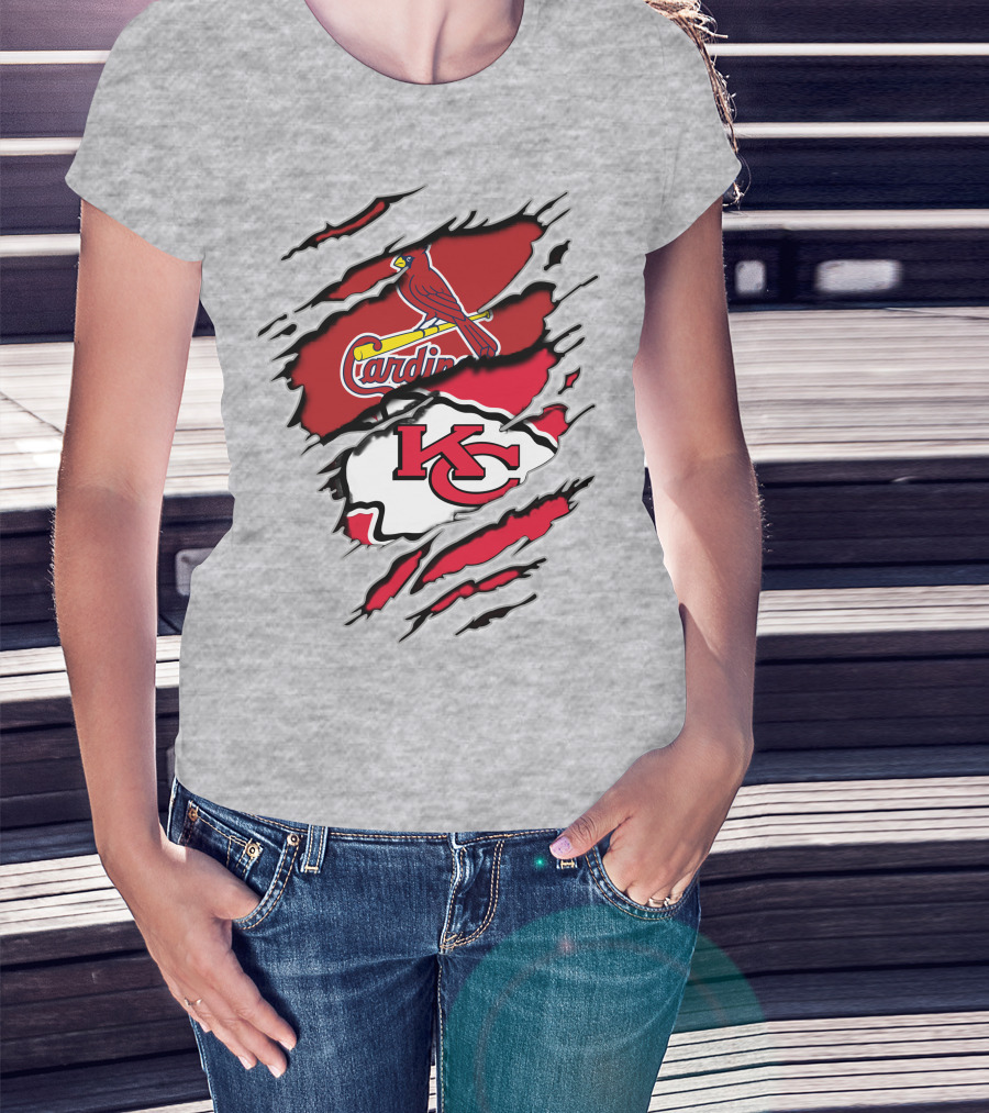 The Kansas City Chiefs St. Louis Cardinals Torn T-shirt is designed for everyday wear and a consistent fit. Fabric is pre-shrunk ring-spun cotton with durable stitching. See the size chart below for exact measurements.