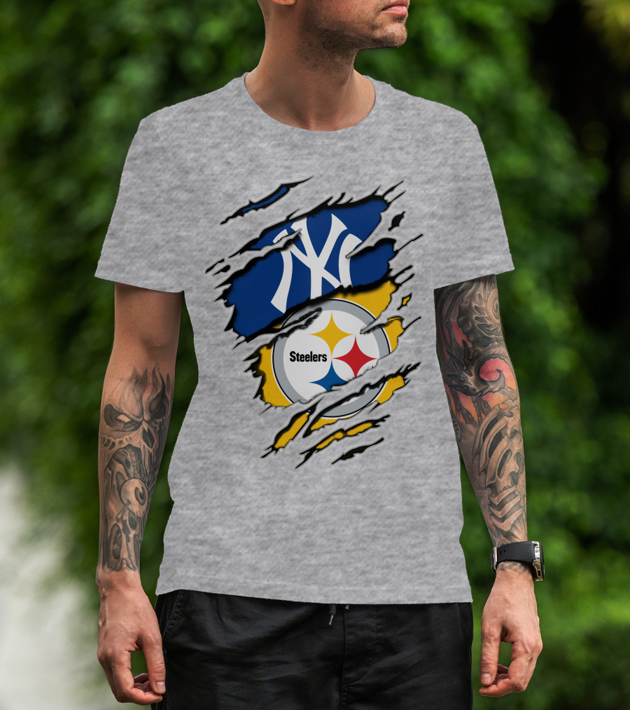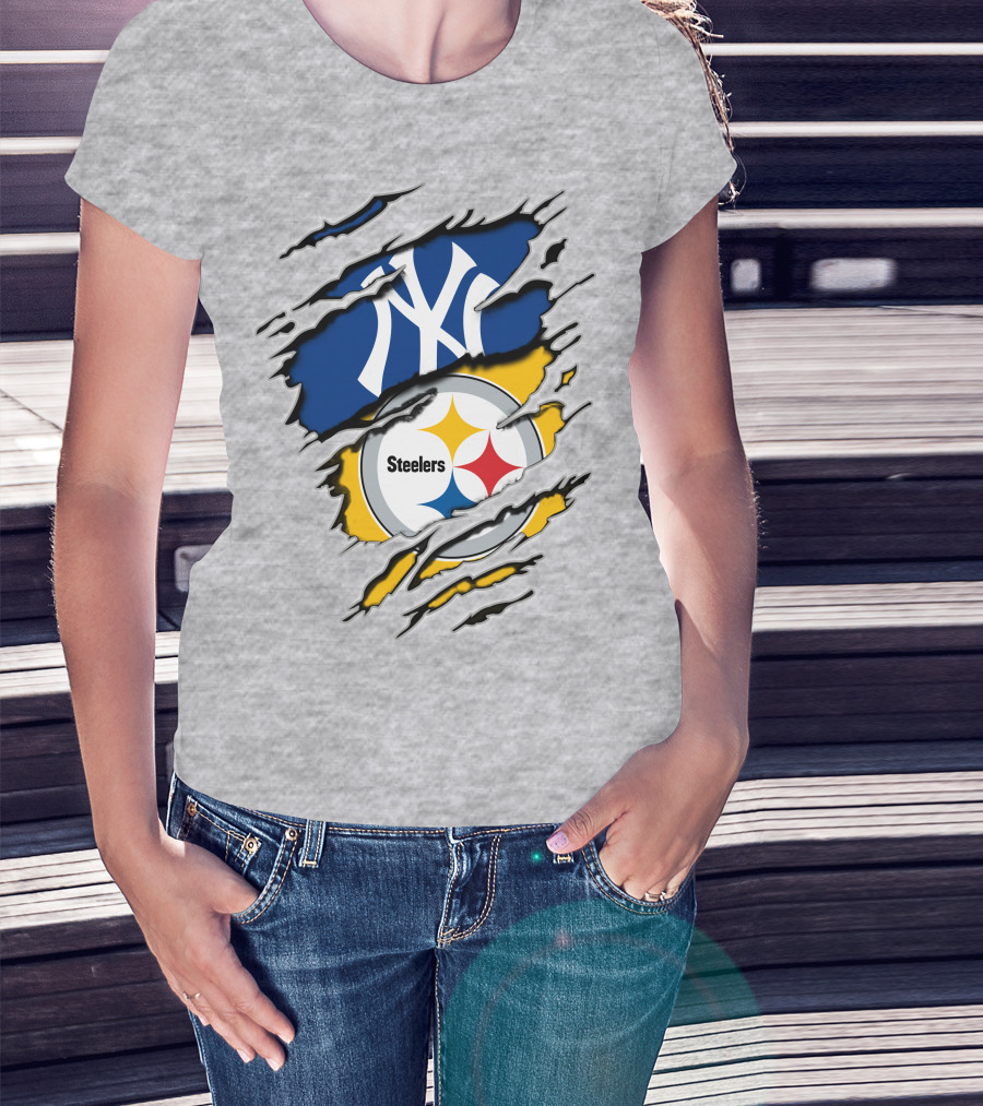 The Steelers Yankees Torn Layered T-shirt is designed for everyday wear and a consistent fit. Fabric is pre-shrunk ring-spun cotton with durable stitching. See the size chart below for exact measurements.