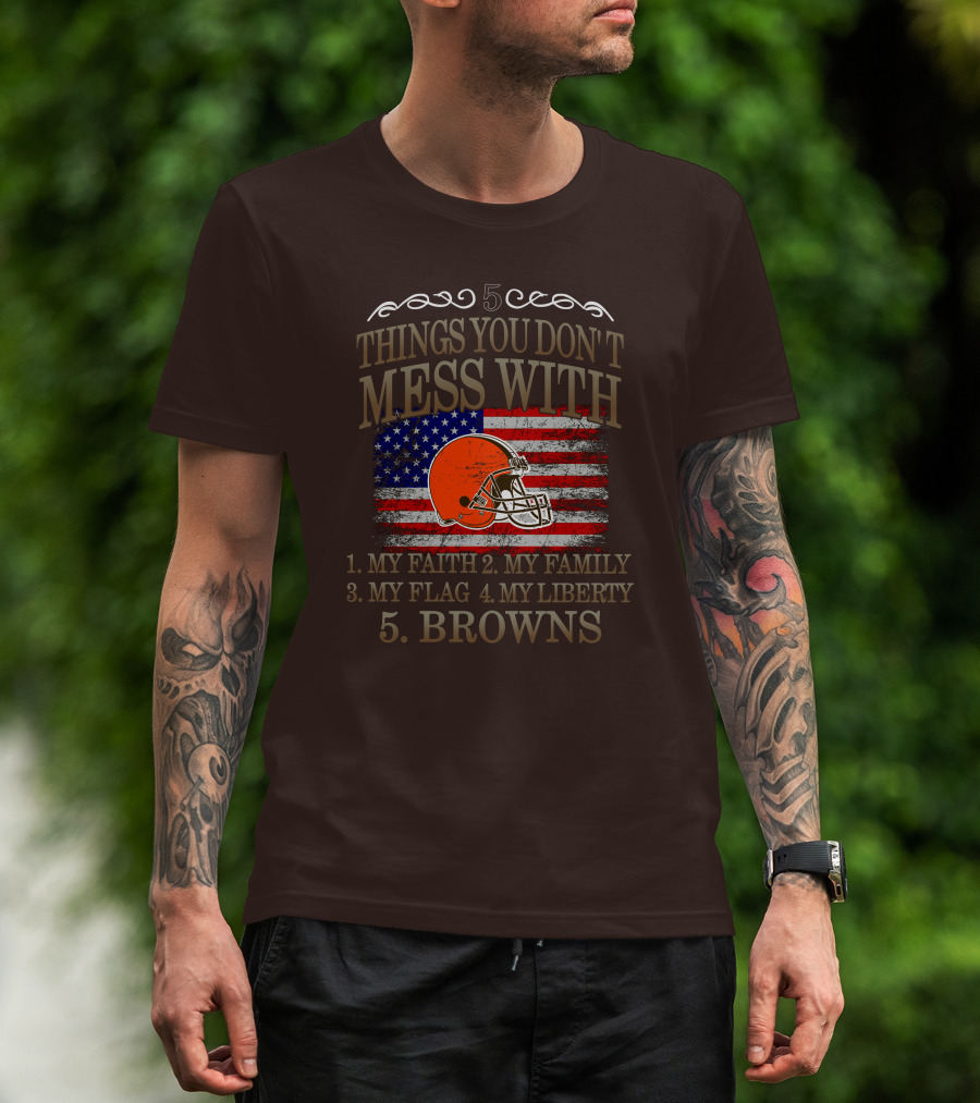 5 Things You Don't Mess With My Faith Family Flag Liberty Browns T-Shirt