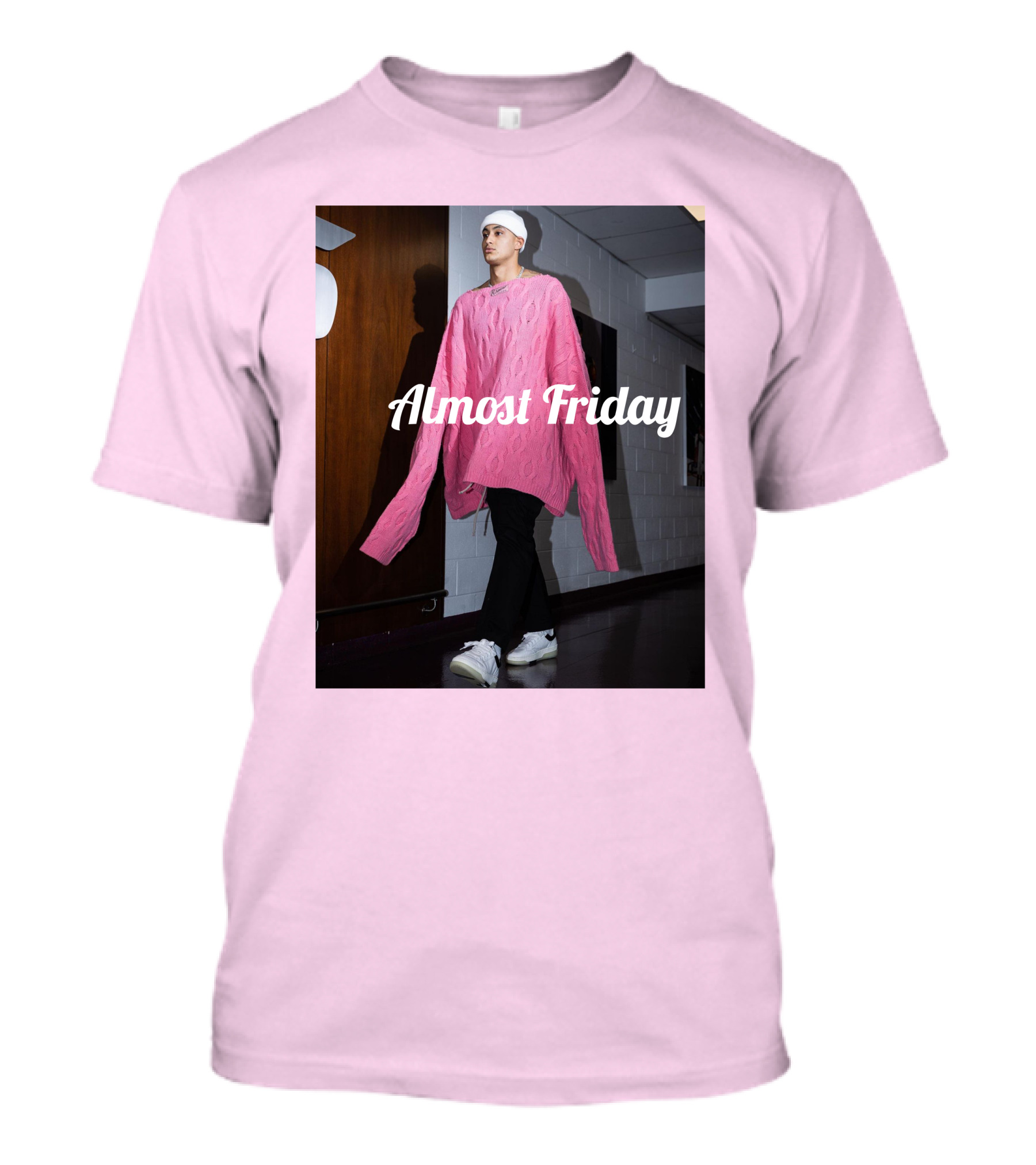 The Almost Friday Kyle Kuzma Pink Sweater Fashion T-shirt is designed for everyday wear and a consistent fit. Fabric is pre-shrunk ring-spun cotton with durable stitching. See the size chart below for exact measurements.