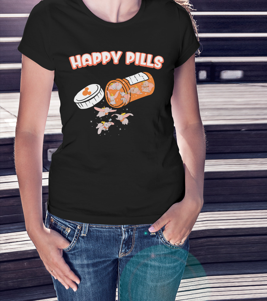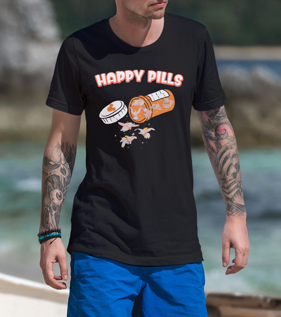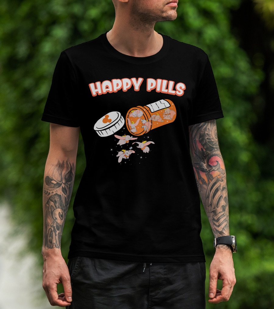 The HAPPY PILLS Dumbo Magic T-shirt is designed for everyday wear and a consistent fit. Fabric is pre-shrunk ring-spun cotton with durable stitching. See the size chart below for exact measurements.