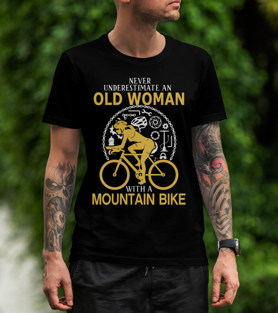 Never Underestimate An Old Woman With A Mountain Bike Cycling Gear Adventure T-Shirt