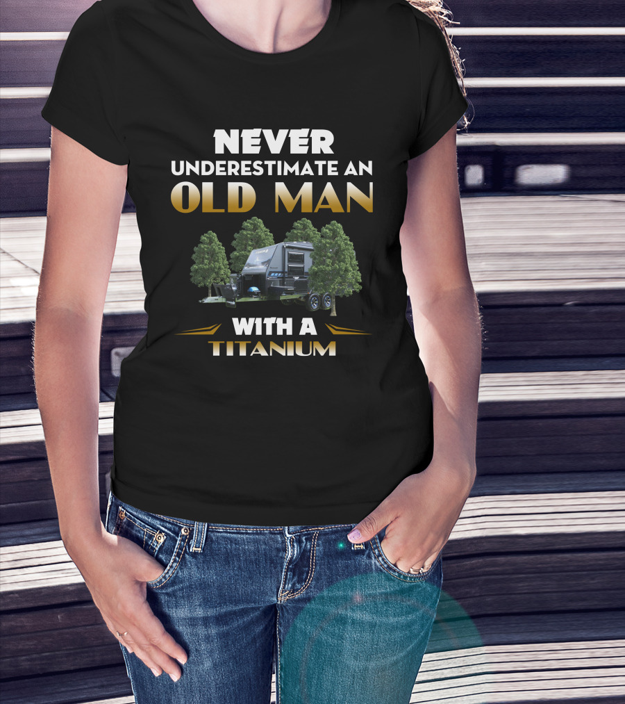 NEVER UNDERESTIMATE AN OLD MAN WITH A TITANIUM CARAVAN T-Shirt
