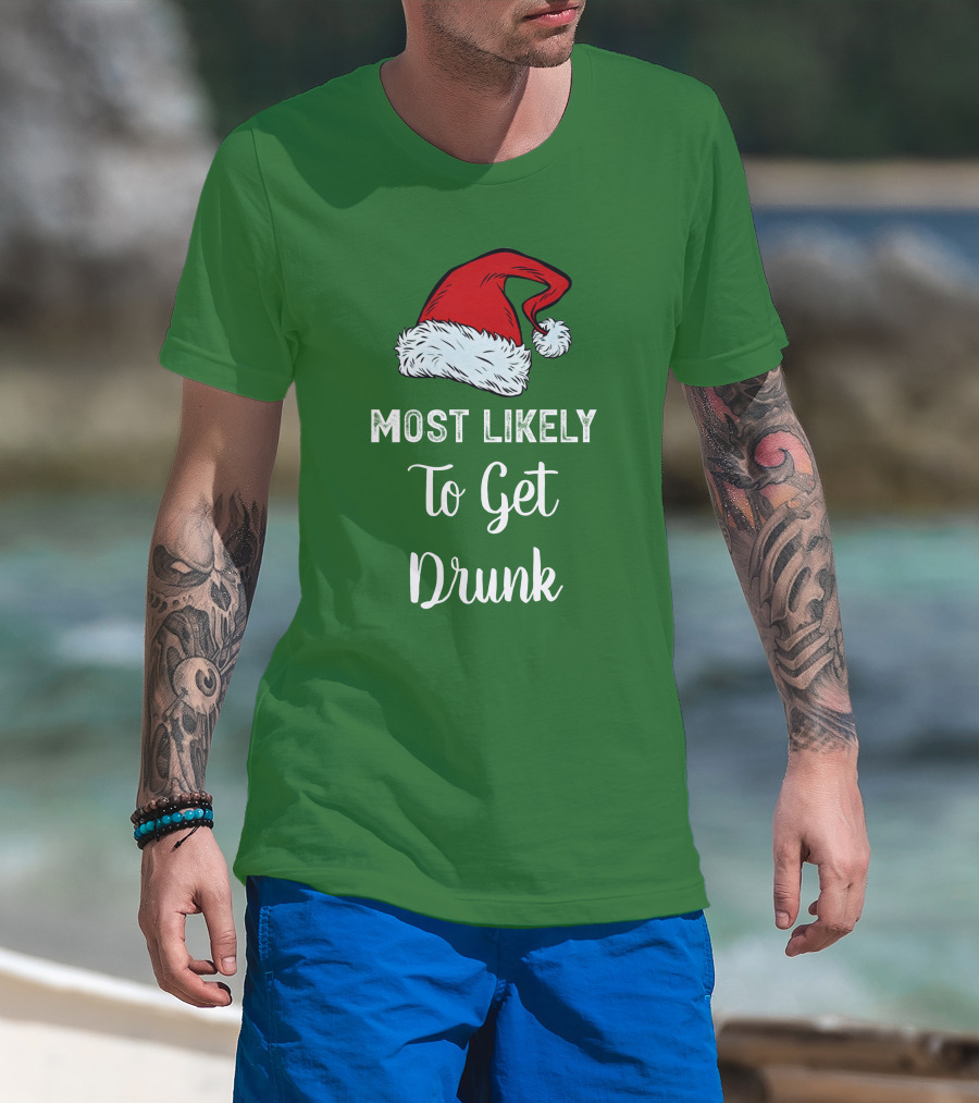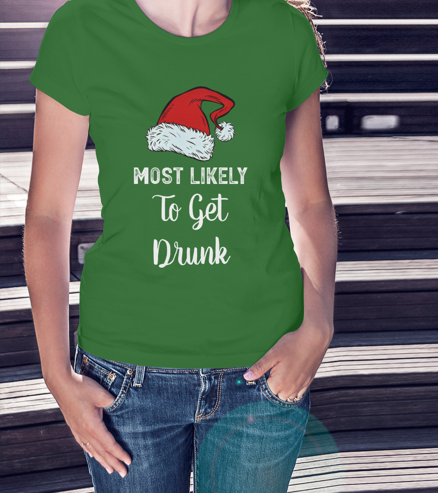 Most Likely To Get Drunk Santa Hat Christmas Karma Life Llc T-Shirt