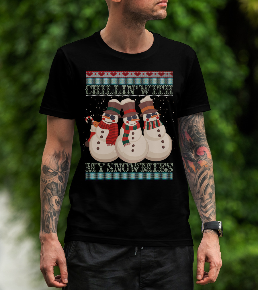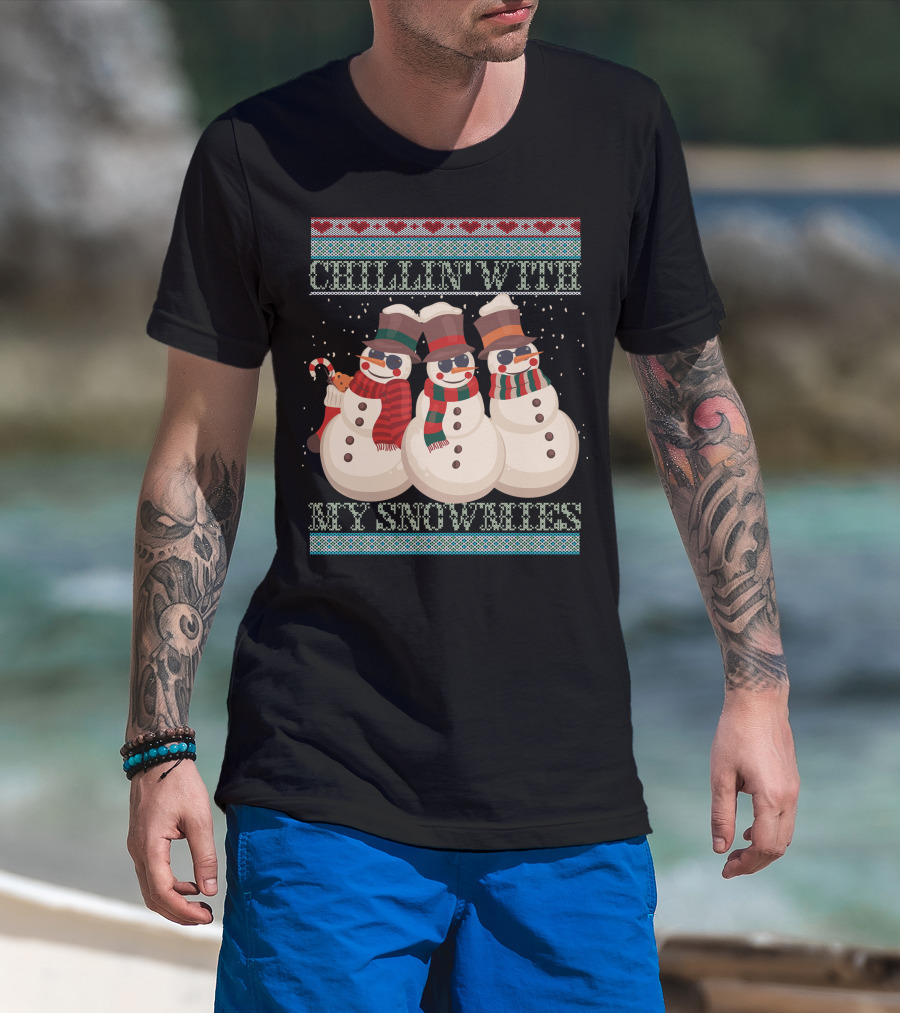Chillin With My Snowmies Snowmen Trio Winter Holiday T-Shirt